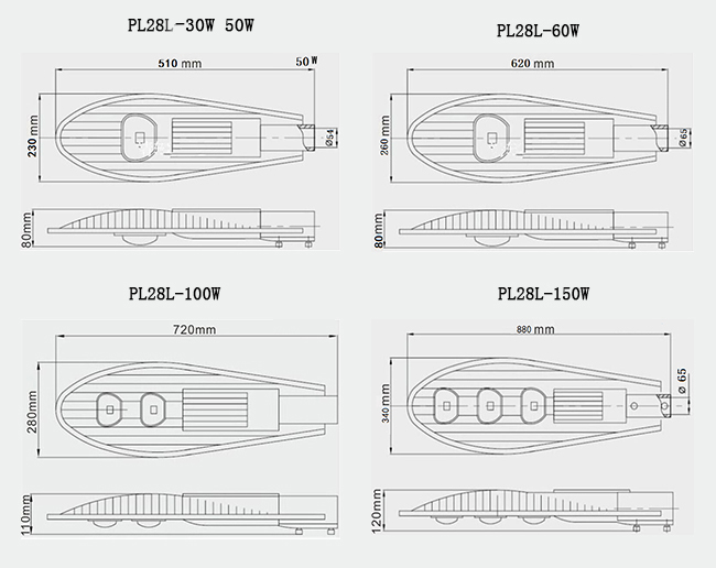 | 型號 | PL28L-30W | PL28L-50W | PL28L-60W | PL28L-100W | PL28L-150W |