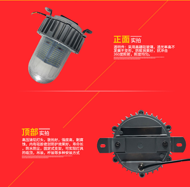 - 產(chǎn)品簡介:產(chǎn)品特點(diǎn): 1.LED光源,光效高,替代傳統(tǒng)金鹵防眩燈。 2.運(yùn)用先進(jìn)的光學(xué)和照明原理優(yōu)化設(shè)計(jì)透明件,光線柔 和,照度均勻,無眩光,無重影,能有效避免作業(yè)、 施工人員產(chǎn)生不適合疲勞感。 3.選用高強(qiáng)度鋁合金外殼,進(jìn)行特殊的密封和表面涂層 處理,防護(hù)等級(jí)IP66,可在高溫潮濕和各種腐蝕性等 惡劣條件下長期使用。 4.座式、吸頂式和側(cè)壁吸式等多種安裝力式,適應(yīng)不同的工作環(huán)境。