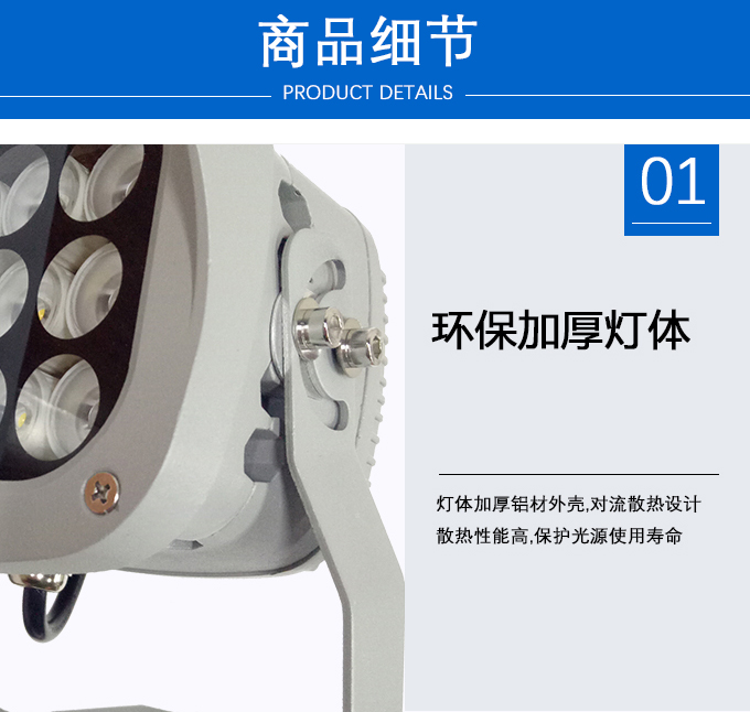 2、采用加厚鋼化玻璃,硬度大不易開(kāi)裂,透光率高3、散熱器采用加厚鋁材外殼,對(duì)流散熱設(shè)計(jì)散熱性能高,保護(hù)光源使用壽命