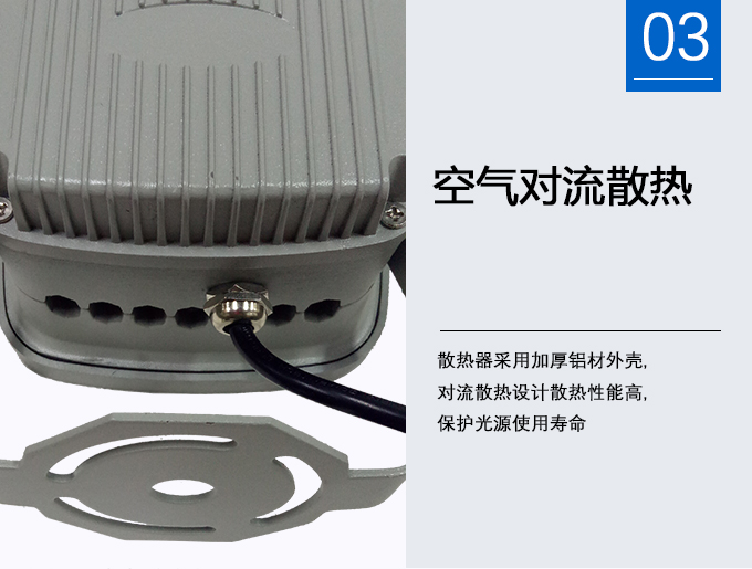 4、燈體加厚鋁材外殼,對(duì)流散熱設(shè)計(jì)散熱性能高,保護(hù)光源使用壽命