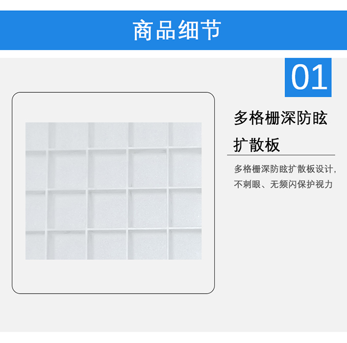 1.多格柵深防眩擴散板設(shè)計,不刺眼、無頻閃保護視力