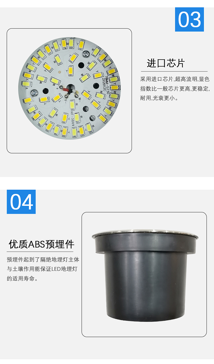 4.預(yù)埋件起到了隔絕LED地埋燈主體與土壤作用能保證LED地埋燈的適用壽命。